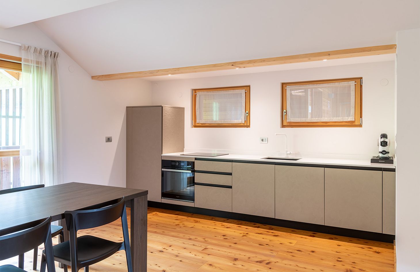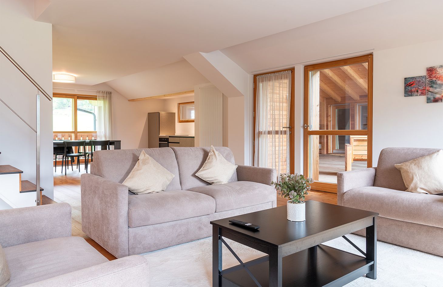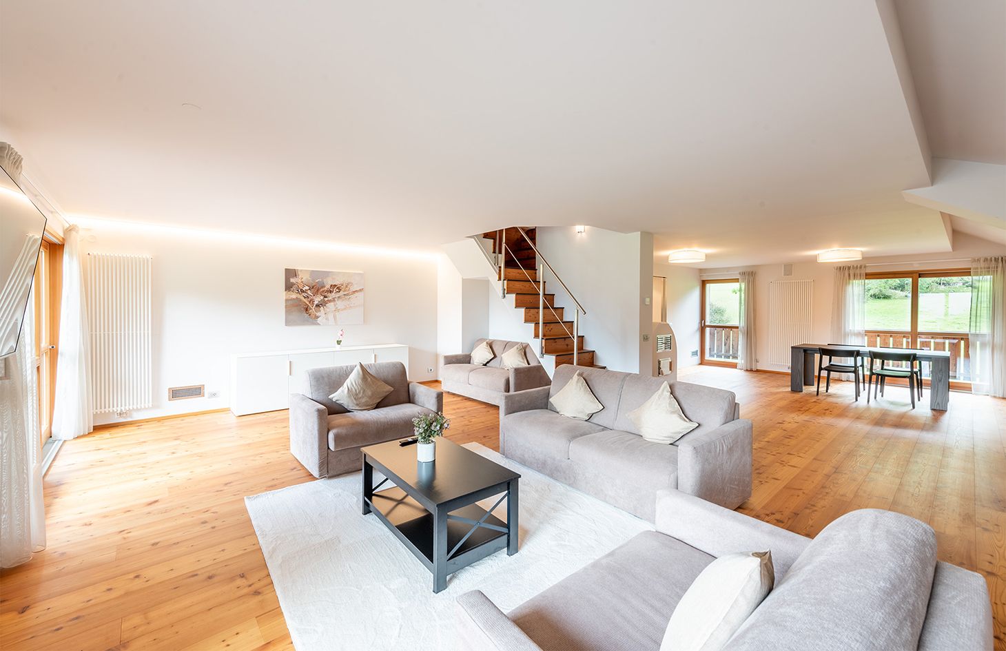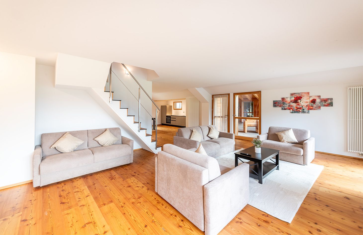 Perfetto per coppie o famiglie piccole, il nostro appartamento MOOS offre una camera da letto spaziosa, un comodo divano letto nel soggiorno, una cucina completamente attrezzata e un bagno moderno. Goditi il relax sul balcone con una vista mozzafiato sulle montagne circostanti. Ideale per un massimo di 4 ospiti.